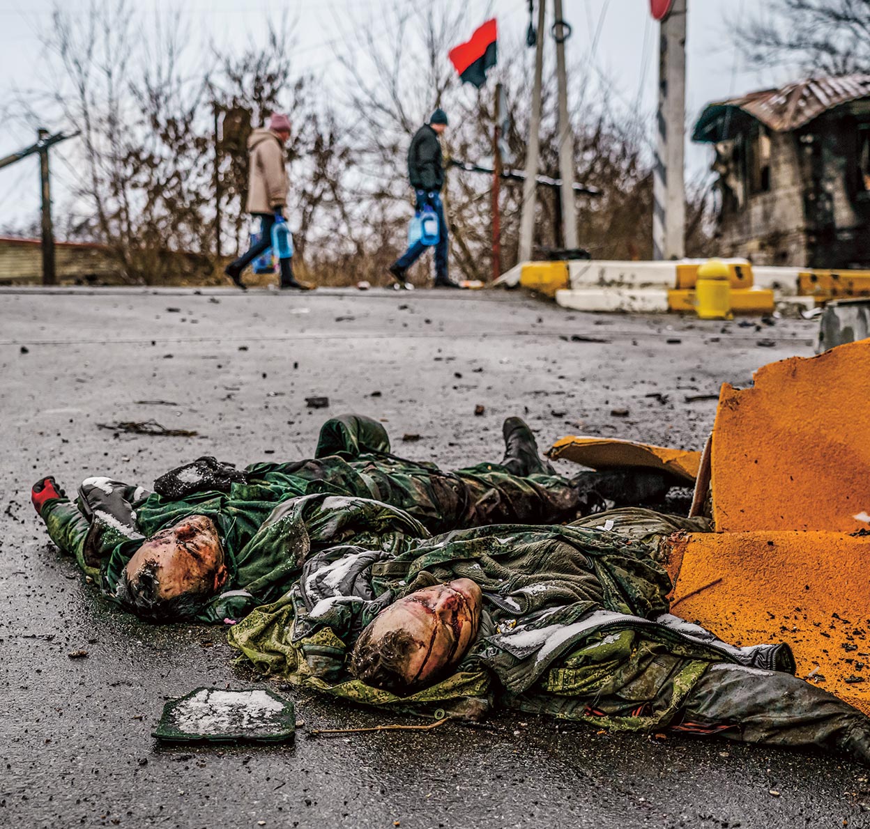 Enseña entonces un vídeo de YouTube grabado por una ucraniana, los primeros días de la guerra, en un pueblo entre Kiev y la frontera rusa. Un grupo de personas se pone delante de dos blindados. Un perro ladra, una mujer se arrodilla. Al cabo de medio minuto, los vehículos se dan la vuelta, la mujer dice: «Míralos, los hijos de perra se largan». Rambo dice que uno de los vehículos que se ven en el vídeo era el suyo, que él dio la orden de dar la vuelta.