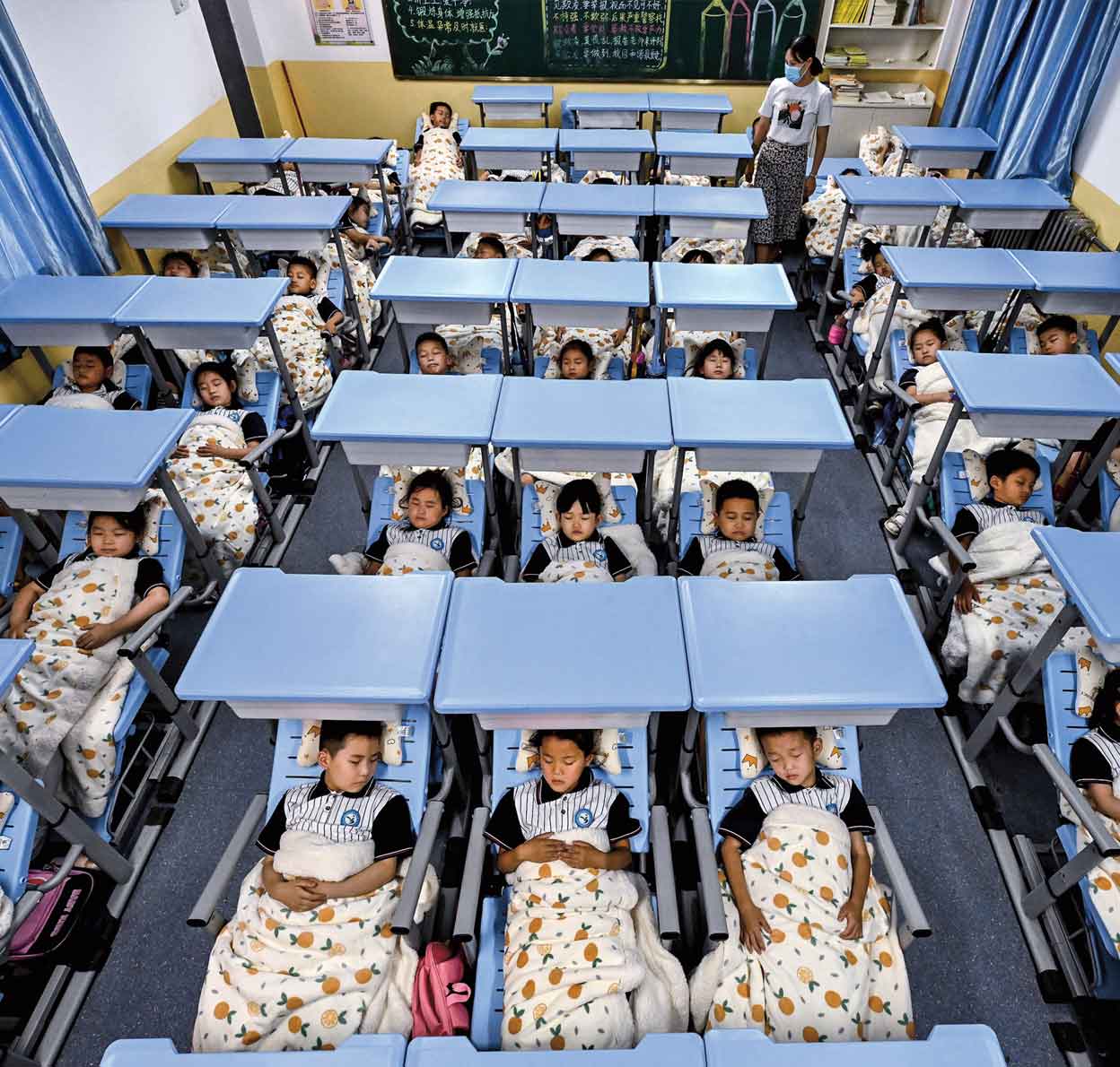 Algunos colegios chinos comienzan a implantar pupitres plegables que se convierten en camas para que los niños descansen después del almuerzo. Los beneficios de la siesta se convierten en una asignatura más dentro del aula, con profesores que monitorizar el sueño de los alumnos.