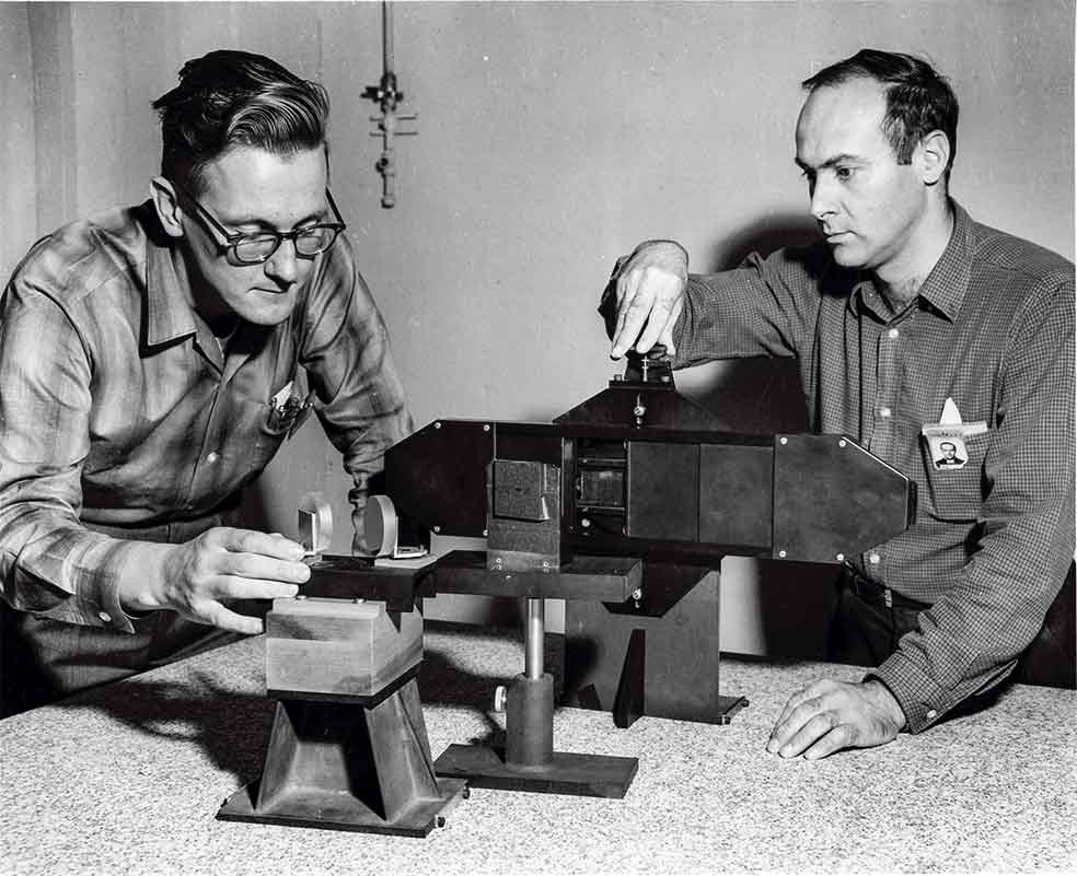 Fueron Emmett Leith y Juris Upatnieks, de la Universidad de Míchigan (en la foto), quienes produjeron el primer holograma. Lo hicieron en 1962 y utilizaron el láser para captar con su luz coherente la imagen holográfica de un tren de juguete. A ellos les sirvió de reconocimiento entre la comunidad científica, pero a Gabor le valió el Premio Nobel de Física en 1971.