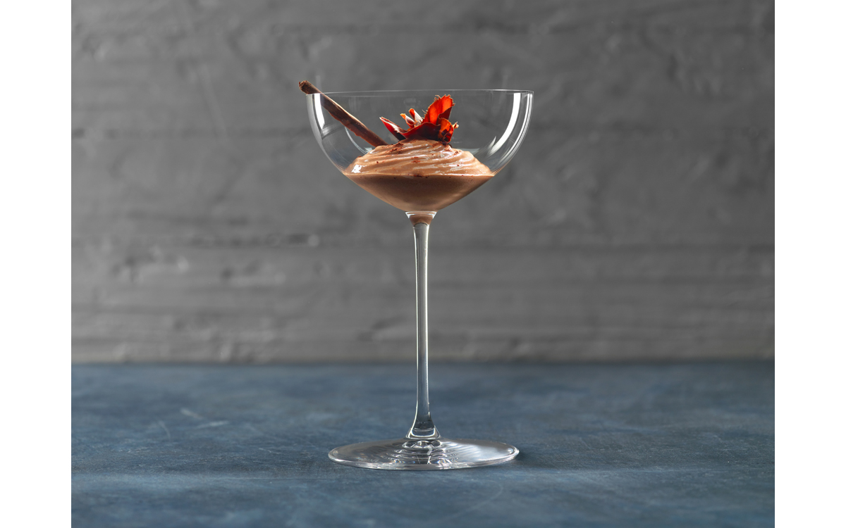 Podemos servir nuestra mousse de chocolate espolvoreándola con cacao amargo y unos cristales de sal, con un buen helado cítrico o con el contraste de frutas rojas ácidas, como frambuesas, casis o grosellas.