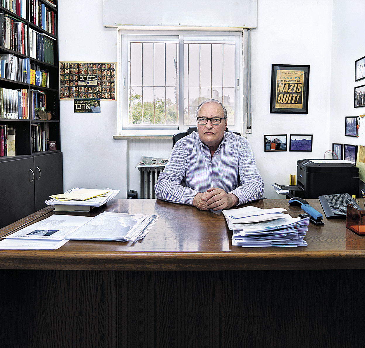 En su escritorio tiene enmarcada también la portada del New York Post del 7 de mayo de 1945. El titular es: «¡Los nazis se rinden!». «Ese día se acabó su poder», dice sin apenas entonación. «Pero nuestro trabajo acababa de empezar».
