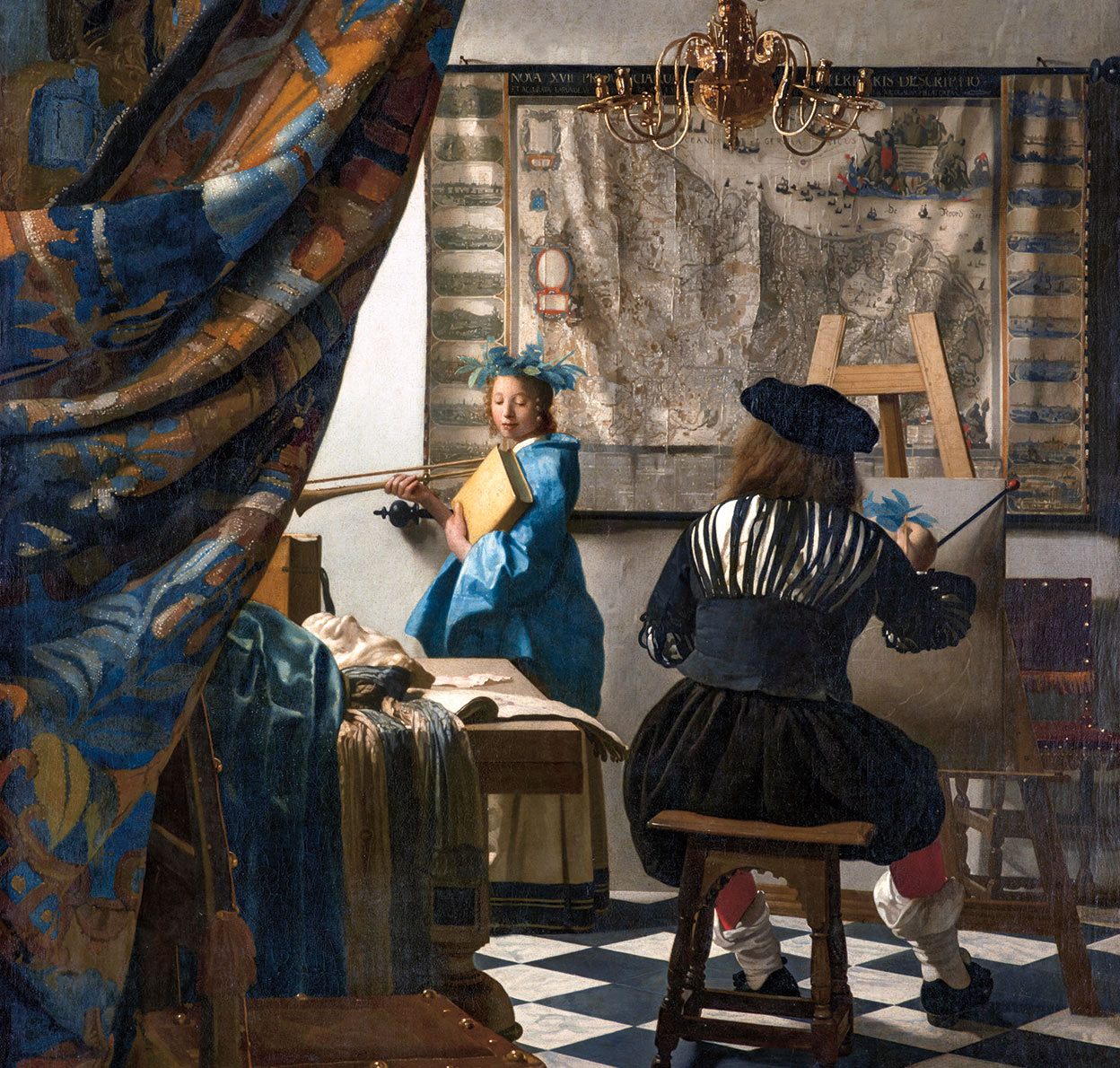 Así que el devenir de El arte de la pintura podría cambiar. Sería un nuevo episodio en su vida novelesca. Fue un cuadro especial desde el primer momento. Vermeer lo pintó hacia 1665. Era un lienzo más grande de lo habitual entre los suyos y se cree que el artista se autoincluyó en la escena y se retrató de espaldas como el pintor, algo raro en Vermeer.