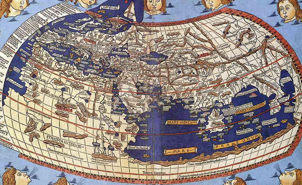 Hacia el año 150 d. C., Ptolomeo escribió la Geographia, una obra que utilizaba un sistema de latitud y longitud y que incluía una serie de mapas que nunca se encontraron, aunque sus escritos eran tan descriptivos que los geógrafos medievales fueron capaces de recrearlos y confeccionar con ellos el famoso mapa de Ptolomeo. Ese mapa se imprimió en Europa en el XV e influyó durante siglos a los cartógrafos europeos y a algunos navegantes, como Cristóbal Colón, que supuestamente llevó una copia en su primer viaje a América.