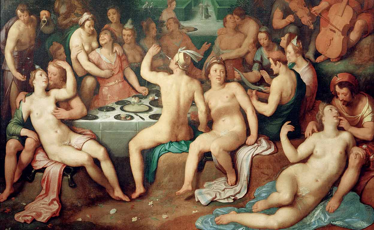 En la época de Pericles, las prostitutas de lujo, llamadas ‘hetairas’, eran invitadas a cenas que podían derivar en grandes orgías en las que los esclavos más codiciados participaban del jolgorio general. Despojadas en gran medida de su simbolismo ritual primitivo, a esas cenas acudía la flor y nata de la sociedad ateniense para filosofar, comer, beber sin piedad y disfrutar de los placeres carnales.