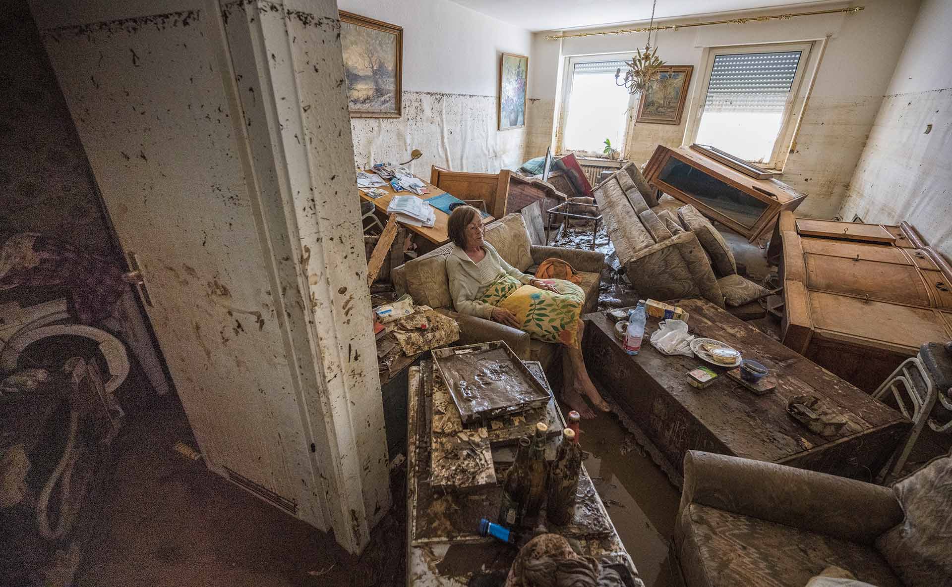 Una mujer de 72 años en el salón de su casa, completamente destruida tras la inundación en Bad Neuenahr-Ahrweiler (Alemania). Sin electricidad y sin agua, la mujer tuvo que vivir durante dos días en medio del caos. Finalmente, los bomberos consiguieron sacarla y buscarle otro refugio.