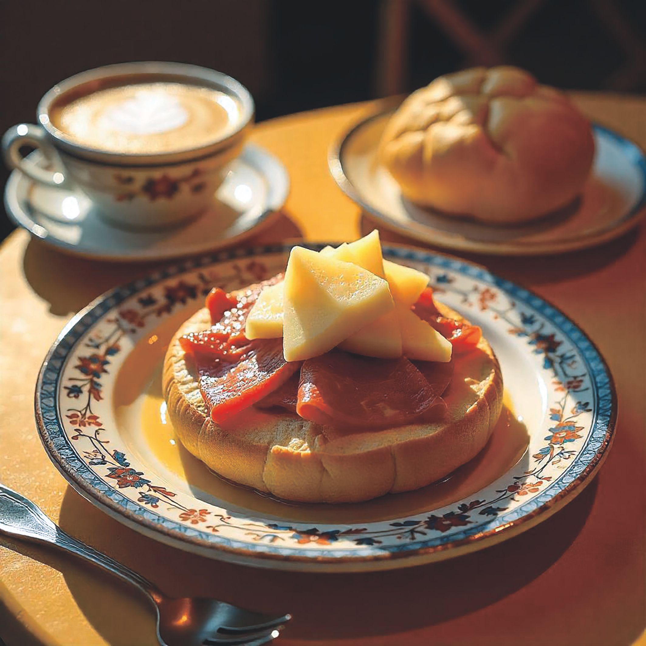 «Un café con leche y un mollete con unas rodajas de salchichón y queso».