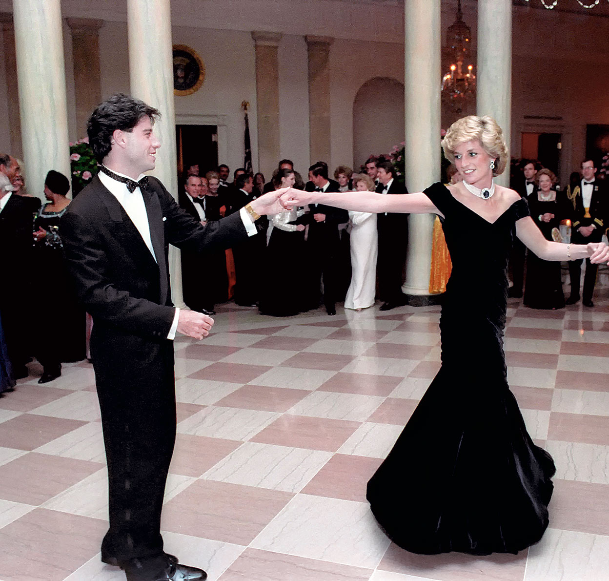 Hubo algunas elecciones menos afortunadas. Hoy veo esas piezas con las hombreras enormes y me pregunto: «¿Cómo demonios se me ocurrió hacer que se pusiera algo semejante?». Pero si hablamos de éxitos, nunca olvidaré el vestido de terciopelo azul de Victor Edelstein que lució en la Casa Blanca cuando bailó con John Travolta. A partir de entonces se convirtió en embajadora de la moda británica.