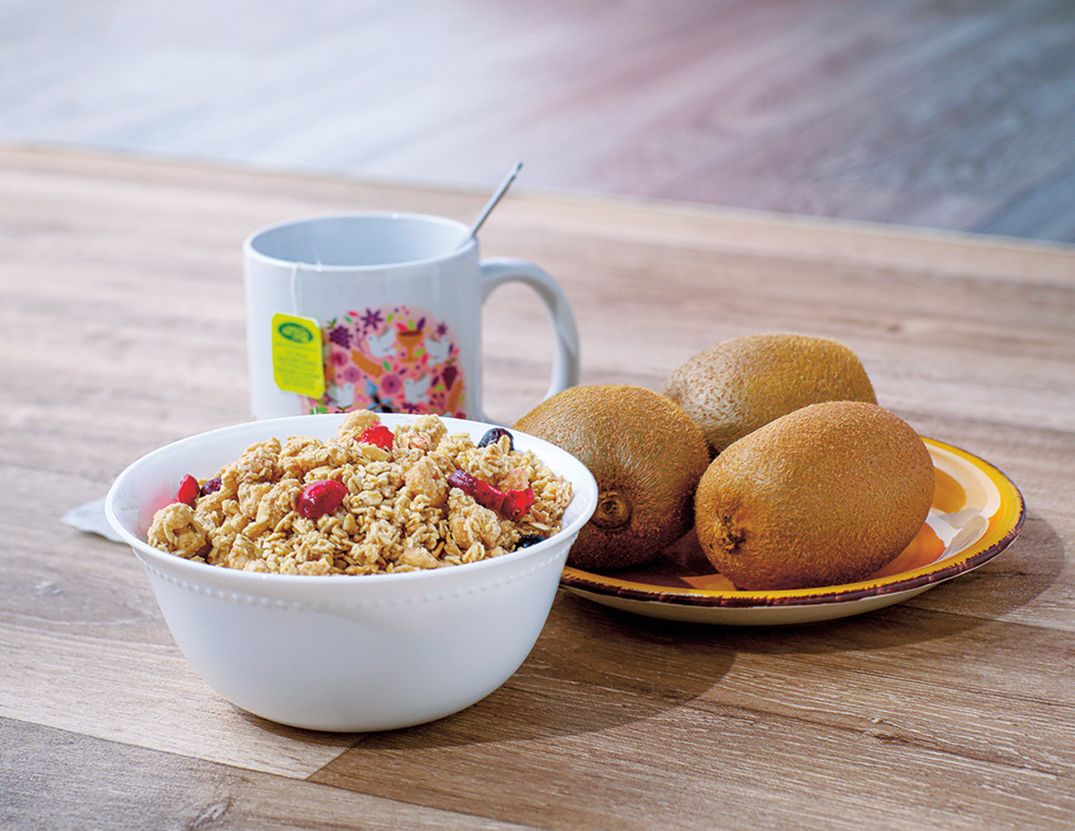 «Como soy celiaca, para desayunar lo más fácil es un surtido de cereales sin gluten en un bol. Y un té verde y una fruta. Hoy, me he tomado un kiwi».