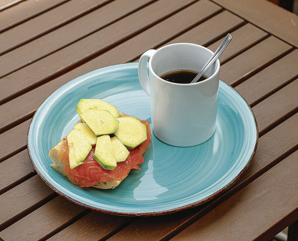 «No suelo desayunar lo mismo, pero me es indispensable empezar con un café americano. Hoy lo he acompañado con una tosta de aguacate y salmón».