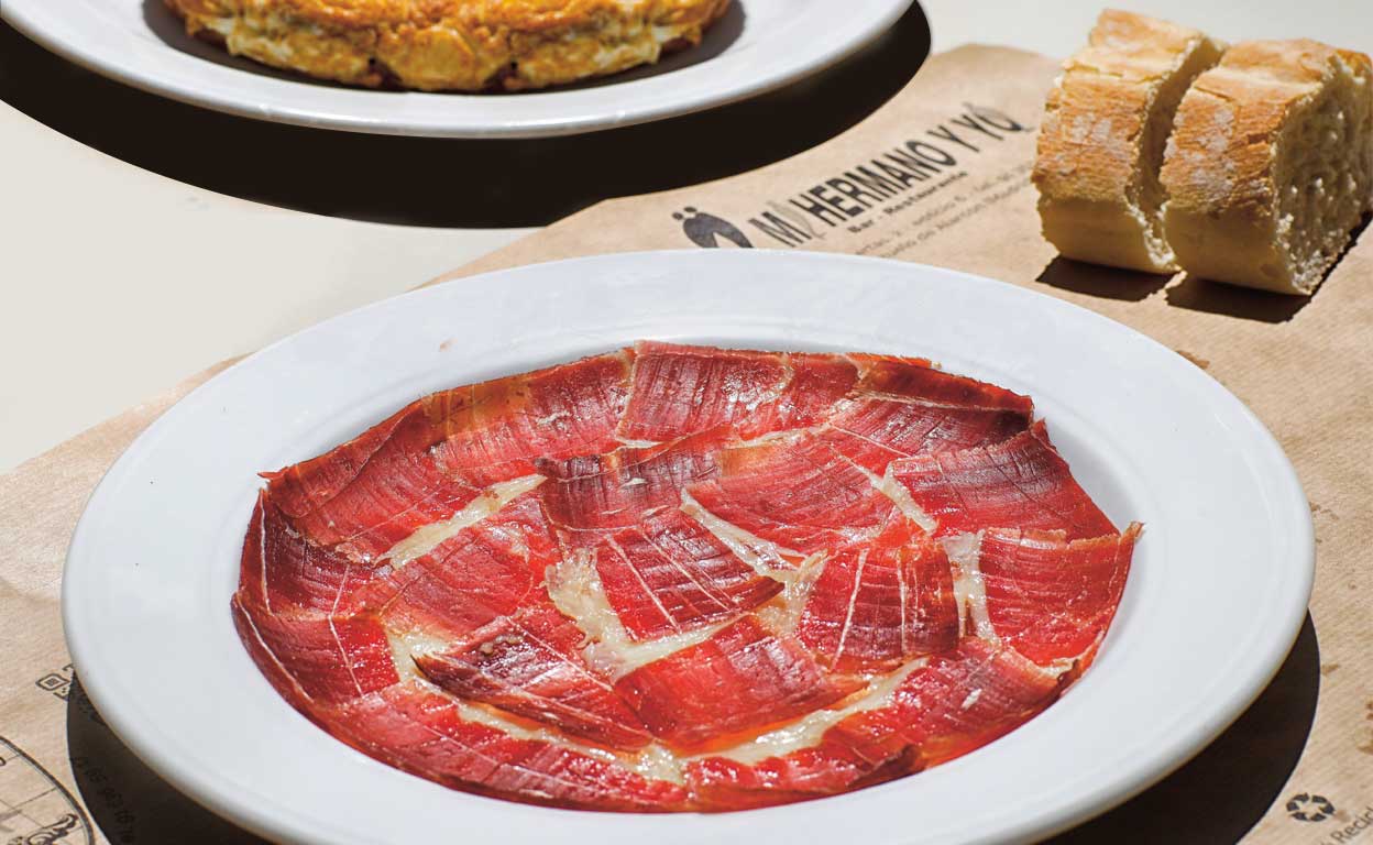 «Sobre las once de la mañana (para mí, muy temprano), un café con leche con tostaditas de pan con aceite de oliva virgen y jamón ibérico».
