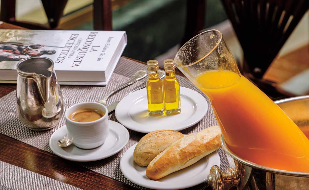 «Leche manchada de café; el zumo de dos naranjas y un limón; y una tostada con aceite de Jaén, porque soy olivarero e hijo de olivareros».