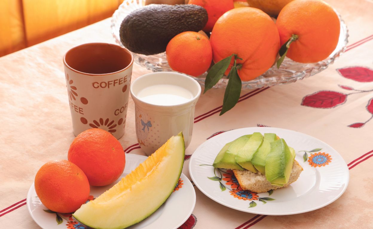 «Una taza de café con leche de coco, una tostada de pan con aguacate (otras veces con jamón), y algo de fruta. Hoy, una rodaja de melón y una mandarina».